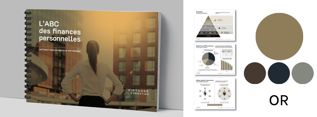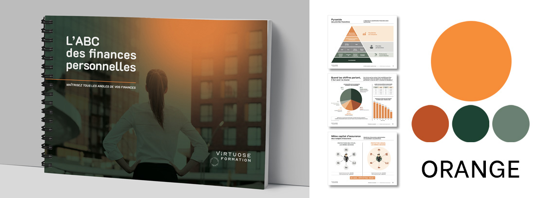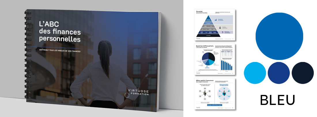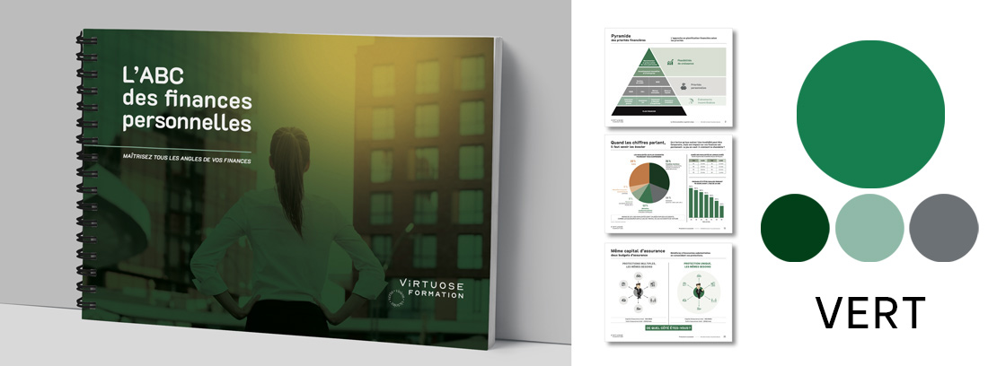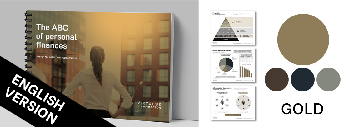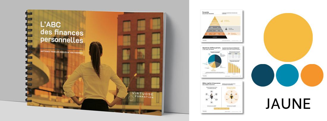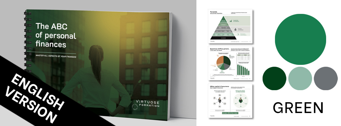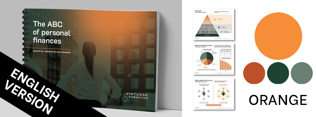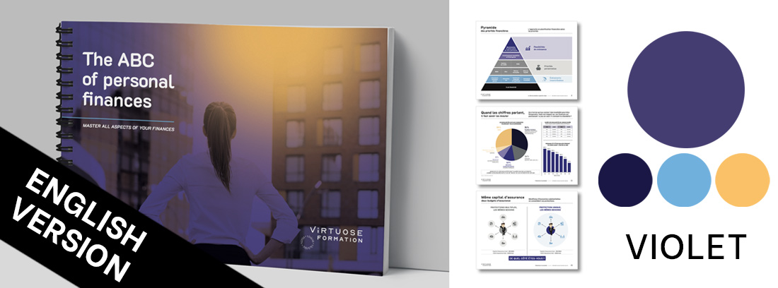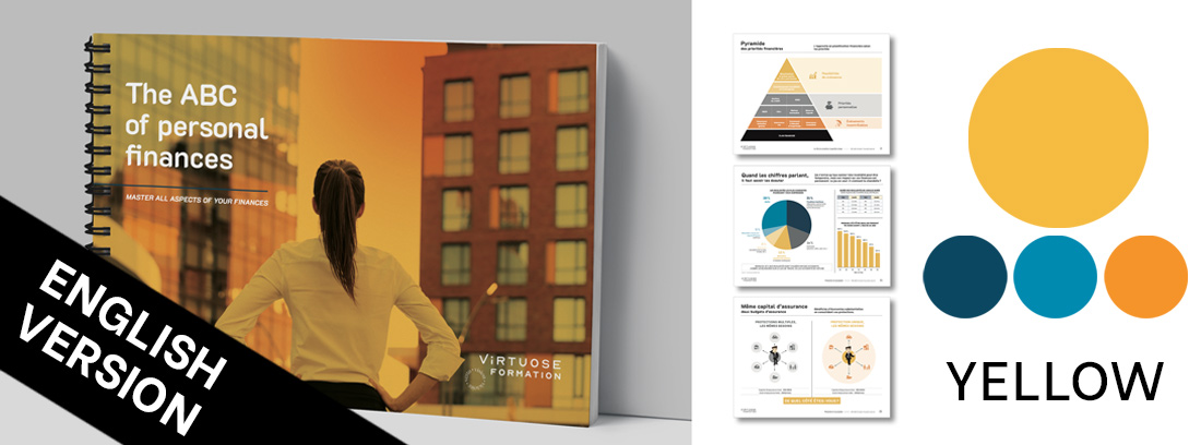 Disponible en 7 choix de couleur, le guide papier de l’ABC des finances personnelles sera un atout supplémentaire lors de vos rencontres client.
